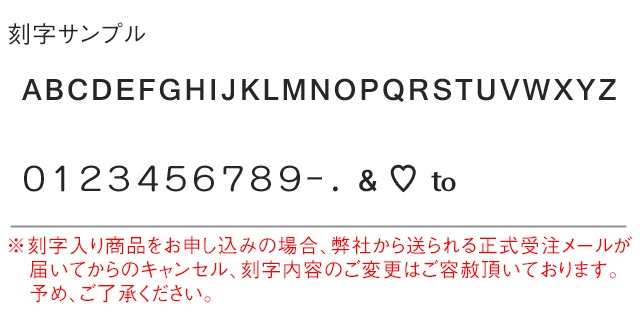 ※刻字入り商品をお申込の場合、当店から送られる注文確認メールが届いてからのキャンセル、返品・交換、ご返金、刻字内容のご変更はご容赦頂いておりますので予めご了承下さい。