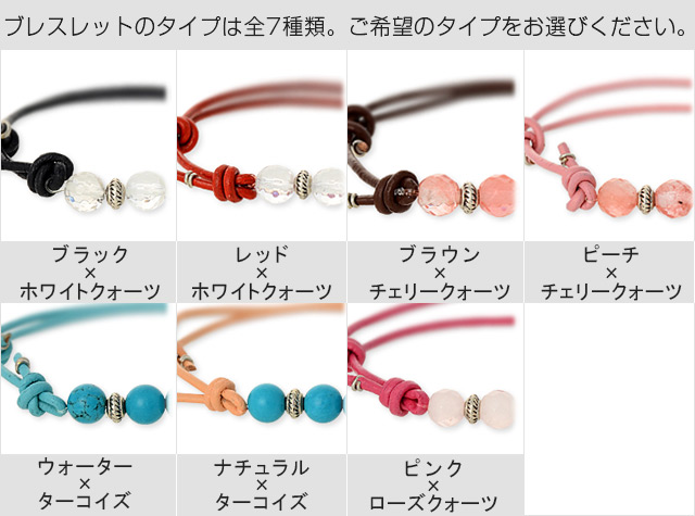 程よいボリュームで着け心地のよさを約束。洗練されたカジュアルファッションを楽しめるペアブレスレット。7種類から選べる石とレザーカラー。