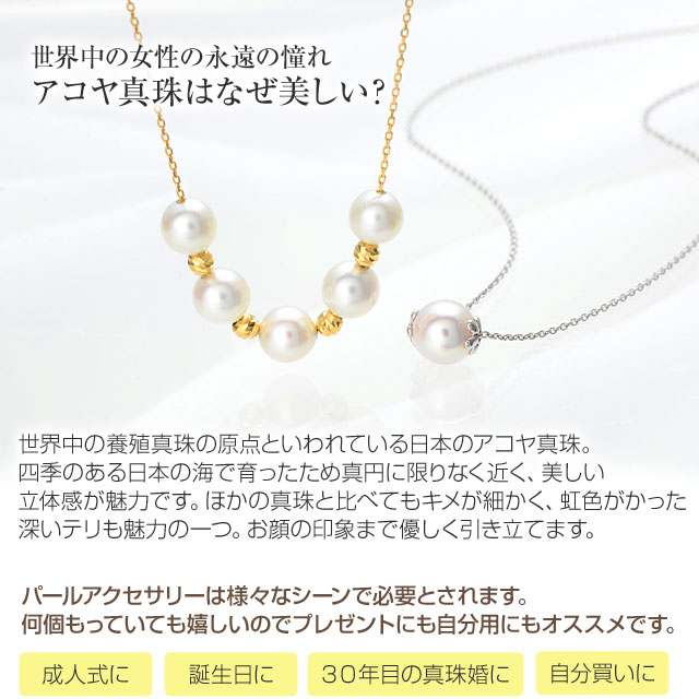 アコヤパールの光沢が胸元を優美に彩ります。大切な方へのプレゼントにぴったりのアクセサリー。