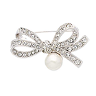 美しい貝パールにクリスタルをあしらった贅沢なつくりのリボンモチーフブローチ