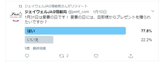 1月31日は「愛妻(あいさい)の日」。夫婦の記念日です。あなたの大切な奥様にいつも”愛”を伝えられていますか?普段、心には思っていても直接伝えられていない”愛”を「愛妻の日」の記念日をチャンスに伝えてみませんか?さらにサプライズを仕掛けることで想いも倍になって伝えることができます♪累計10万組のカップルへプレゼントをお届けしてきたJ.wellが、あなたの「愛妻の日」の記念日サプライズプランを特別にするお手伝いします!!!