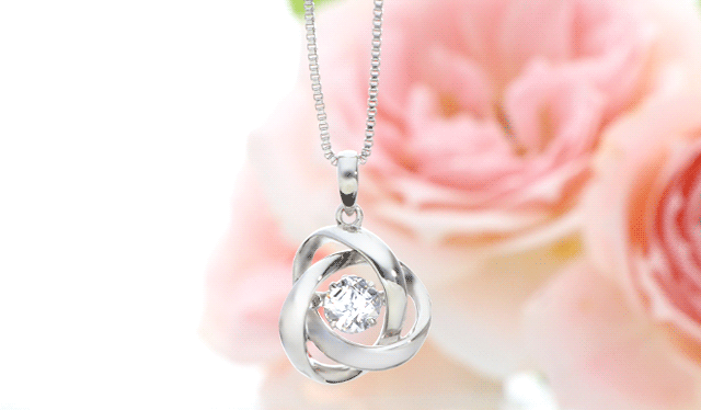 まばゆい輝きで彼女の視線を引きつける、ダンシングストーンのネックレス。