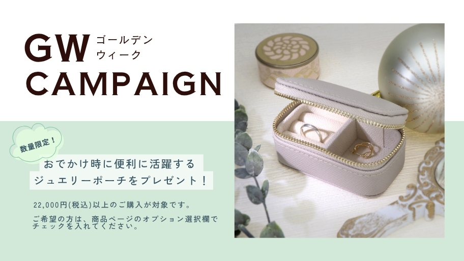 22,000円(税込)以上ご購入で、今だけジュエリーポーチを無料でお届け。